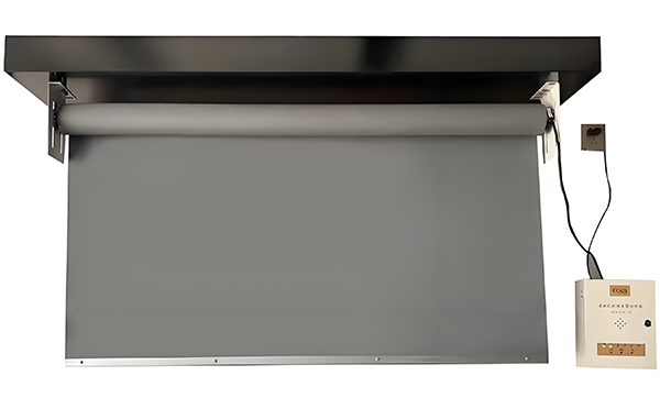 连接电源线和控制线,将昭苏挡烟垂壁安装在支架上,并用螺丝固定。